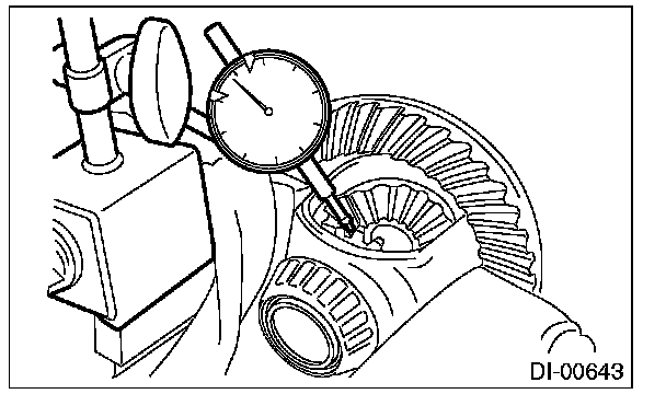 If measured value of backlash is not within the specified range, repeat the procedures for pinion driven gear set backlash adjustment and the differential side bearing preload adjustment.