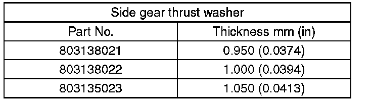(4) Adjust the side gear backlash by selecting side gear thrust washer.