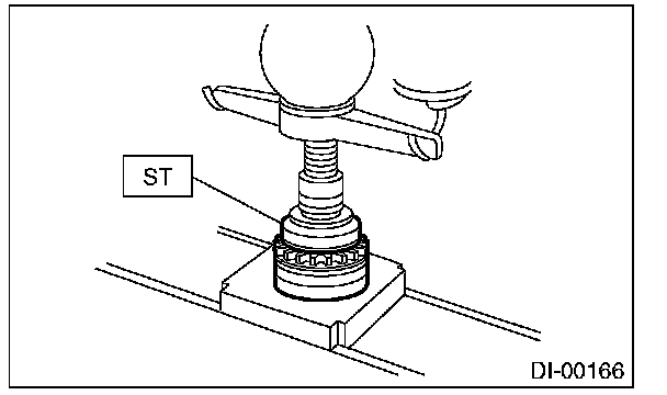 (2) Using the ST, install the front bearing race to the differential carrier.