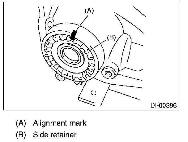 17) Put alignment marks on both the differential carrier and side retainer. Remove the side retainer side at a time.