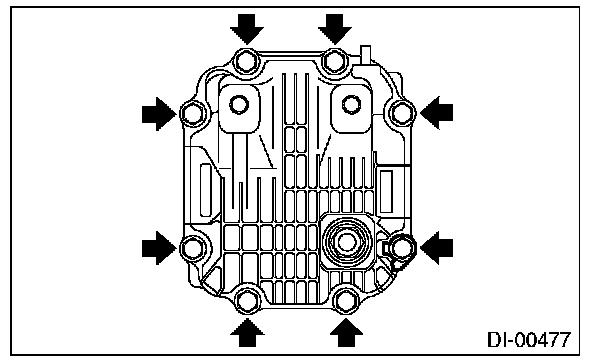 22) Install the new gasket, rear cover and ground stay to the differential carrier, and tighten the bolts to the specified torque.
