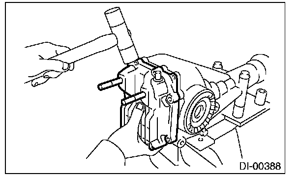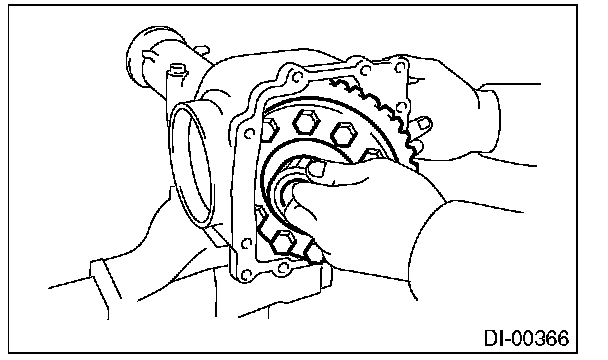 Be careful not to hit the teeth of hypoid driven gear against the differential carrier.