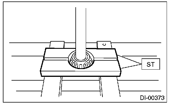 19) Remove the rear bearing cone from drive pinion by supporting the cone with ST.