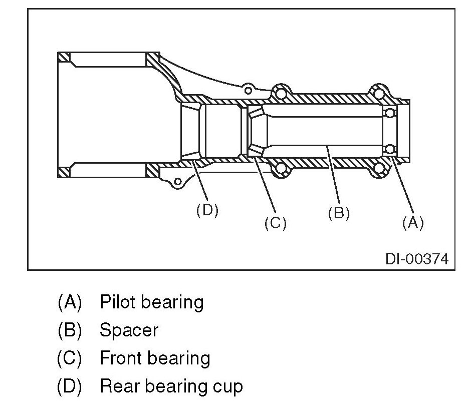 21) Remove the pilot bearing, front bearing cone and spacer.