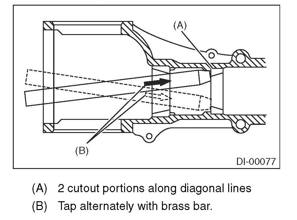 22) When replacing the bearings, use a brass bar to tap out the front bearing cup and rear bearing cup (in this order).