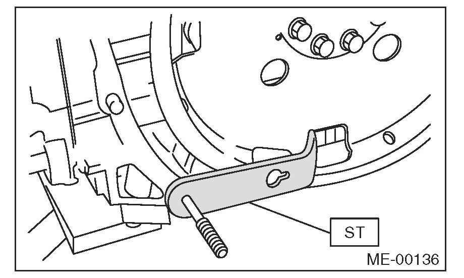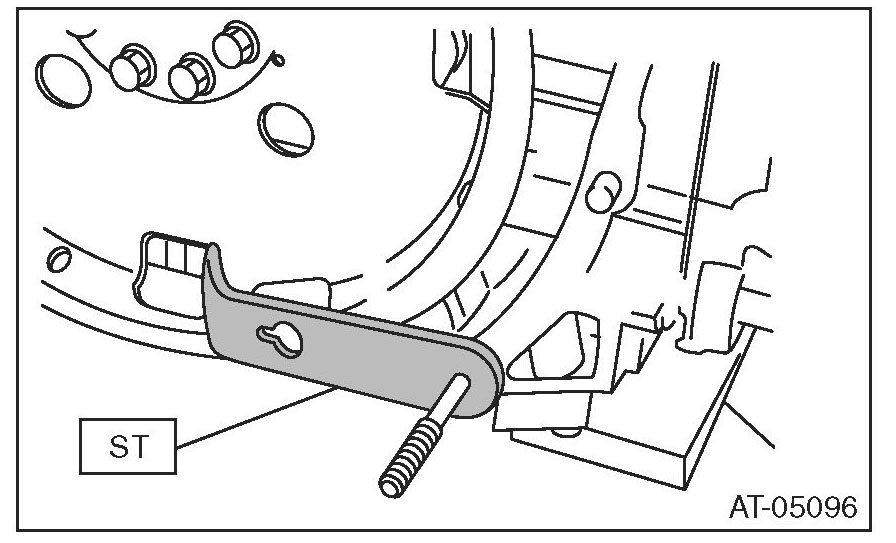 2) Use the ST to lock the crankshaft, and remove the drive plate.