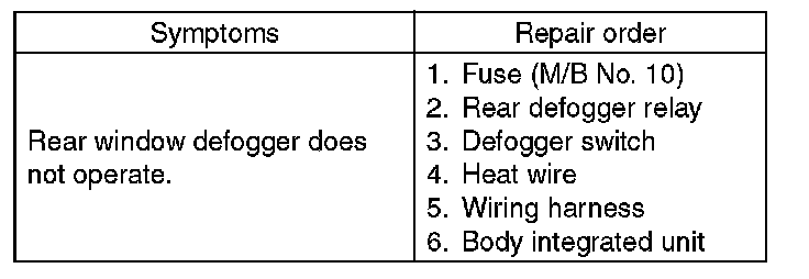CAUTION: Check that the rear window defogger timer is in initial setting or customize setting before performing inspection.