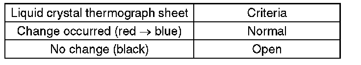 NOTE: Use the liquid crystal thermograph sheet every range it is separated with the separate line.