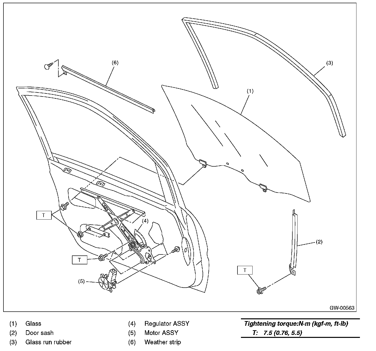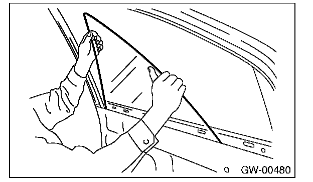 CAUTION: Make sure that the glass run rubber is placed securely in door frame and sash. Install in the reverse order of removal.