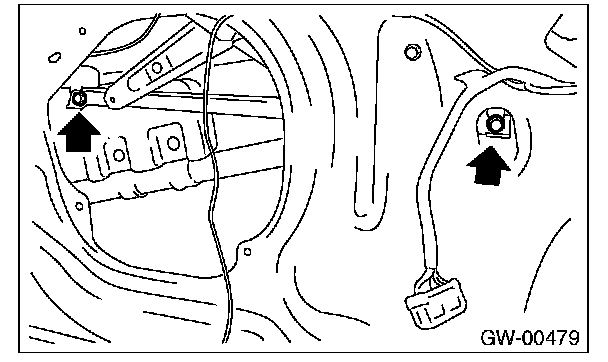 4. Operate the power window switch to move the glass to the position shown in the figure, and then remove the two bolts through service holes.