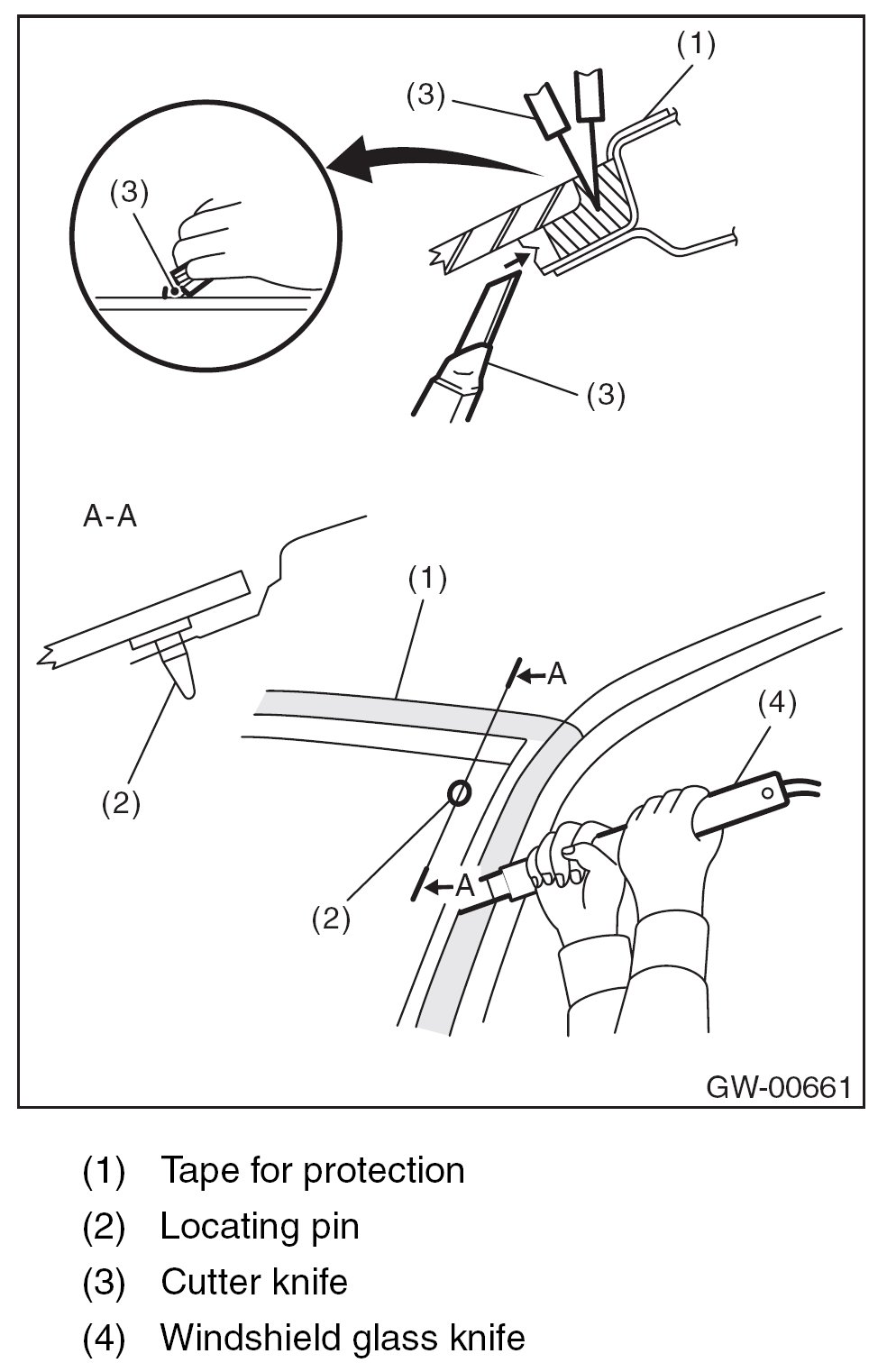 4. Tape the body side of the circumference of windshield glass for protection.