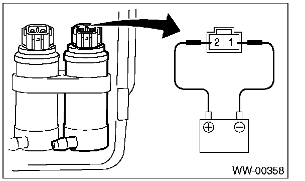 Apply battery voltage to the connector terminal of the washer motor and make sure the motor operates.