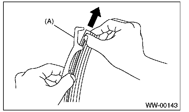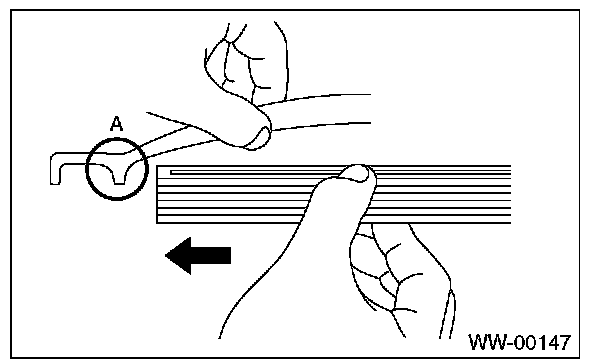 Pull the wiper rubber top slightly from stopper (A) and pull out completely.
