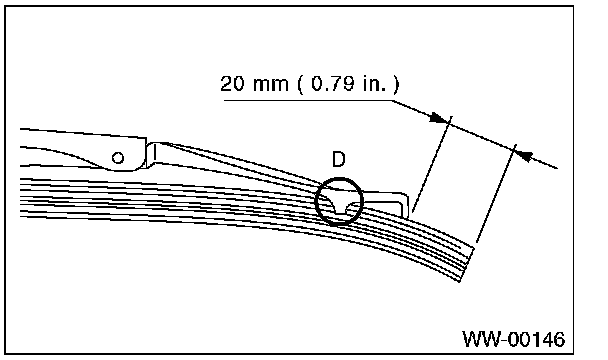 2. Insert the wiper rubber until its top end protrudes approx. 20 mm (0.79 in) from stopper D.