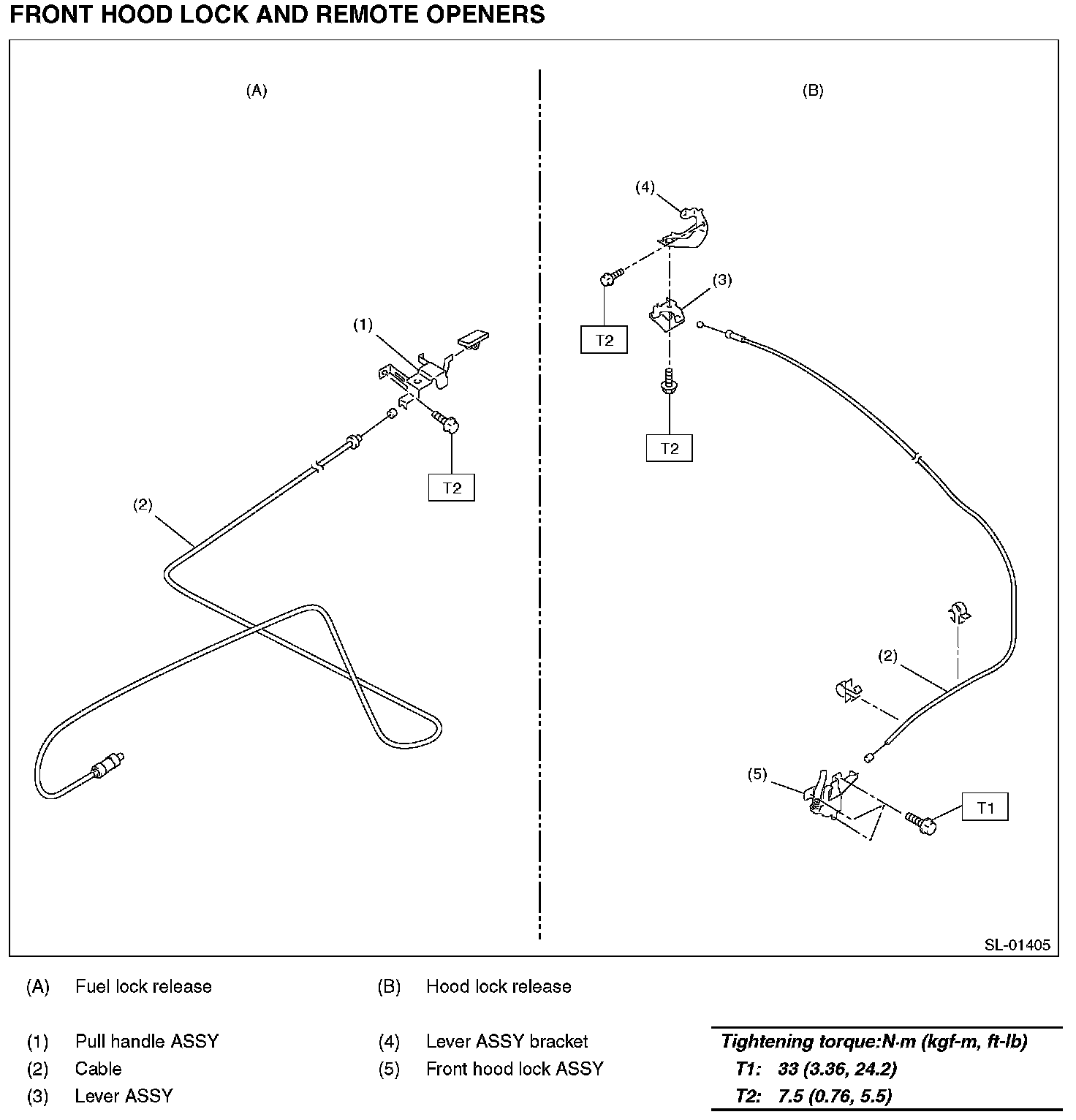 FRONT HOOD LOCK AND REMOTE OPENERS
