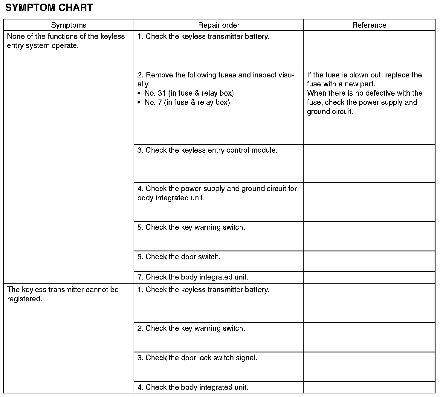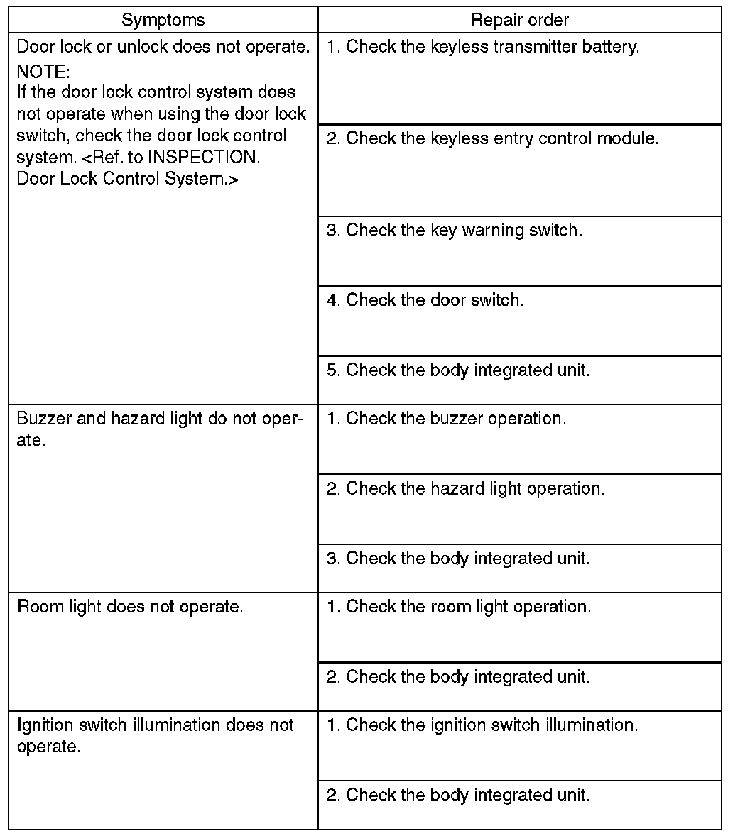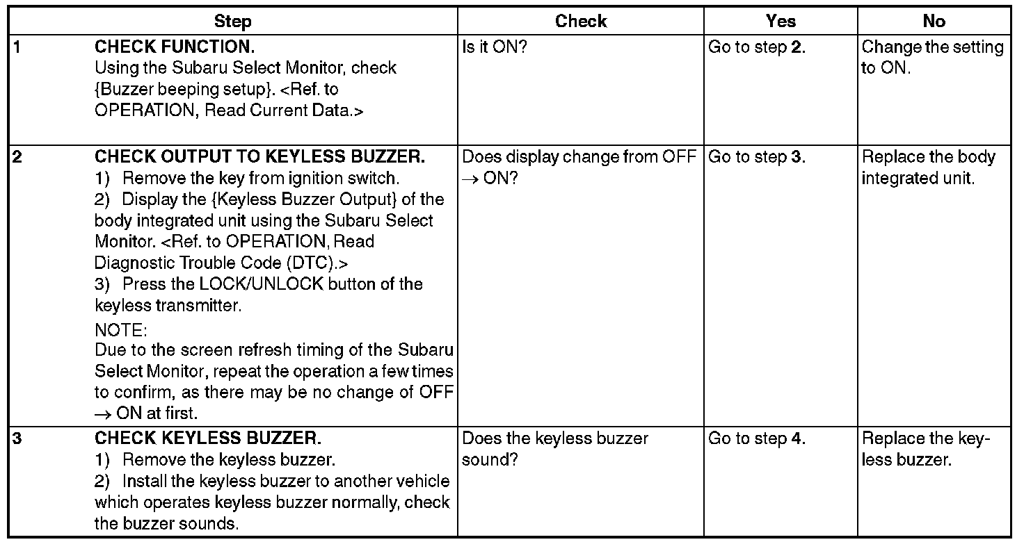 KEYLESS ENTRY SYSTEMINSPECTION