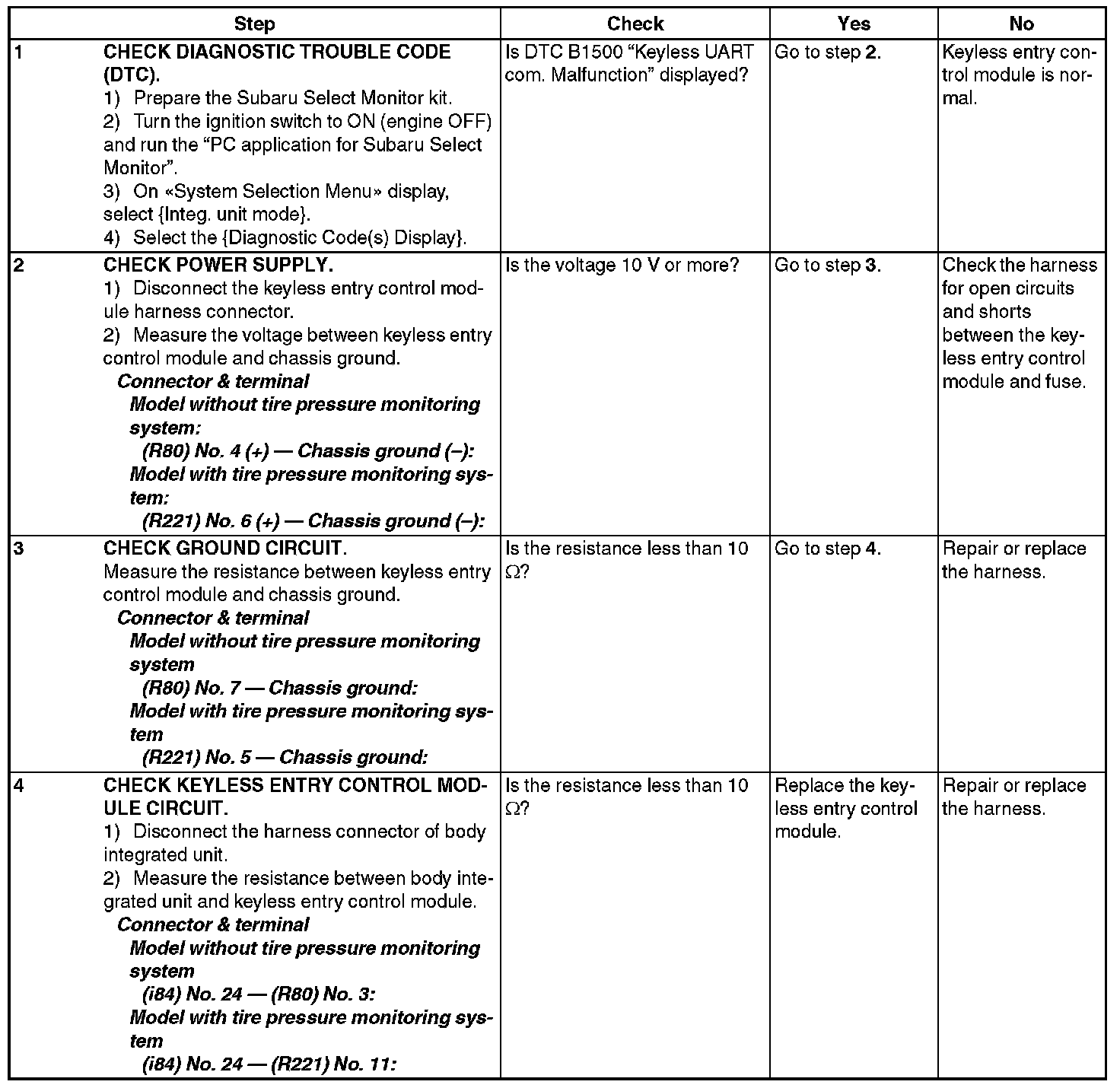 CHECK KEYLESS ENTRY CONTROL MODULE