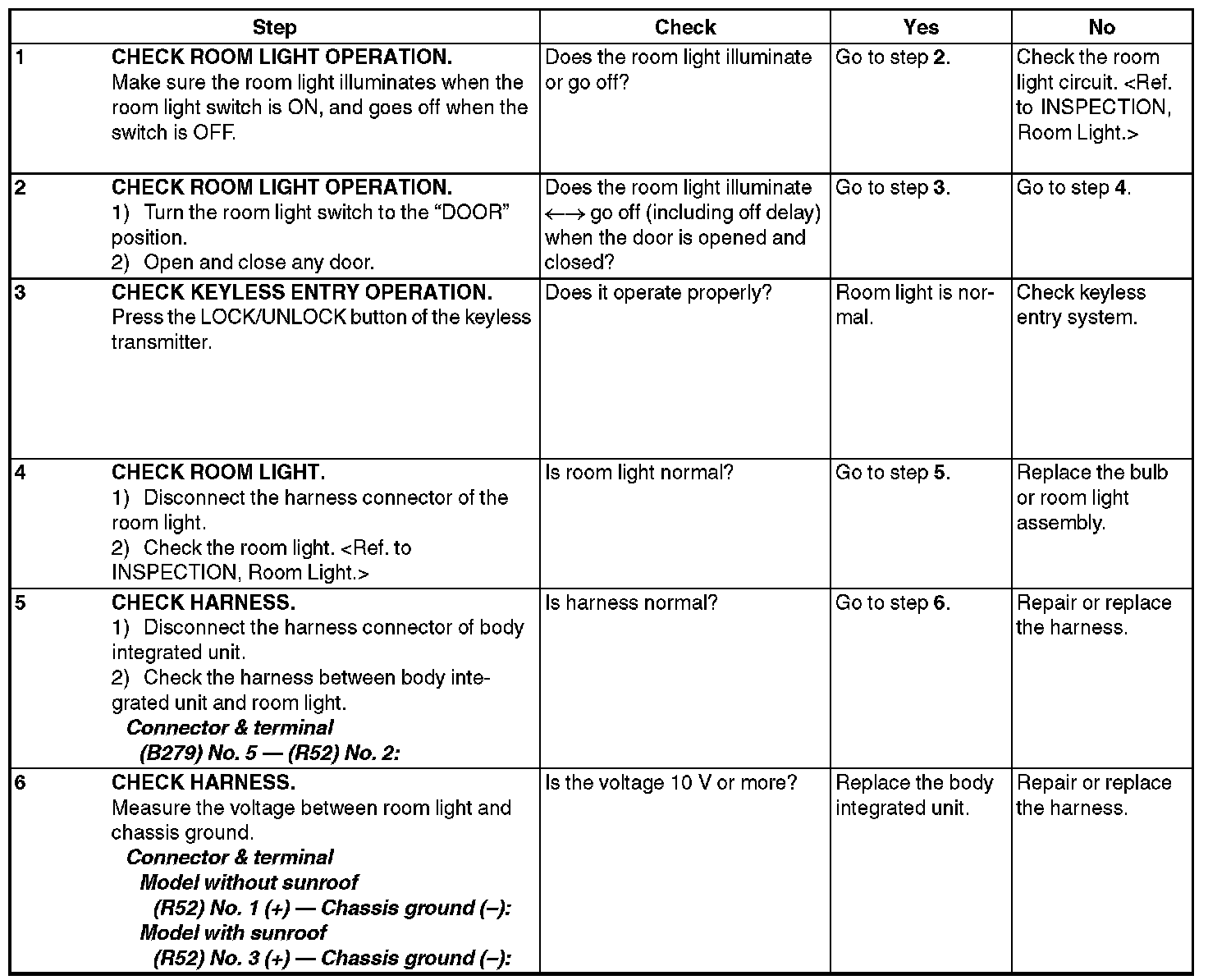 CHECK ROOM LIGHT OPERATION