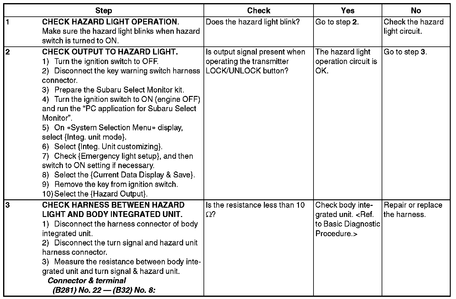CHECK HAZARD LIGHT OPERATION