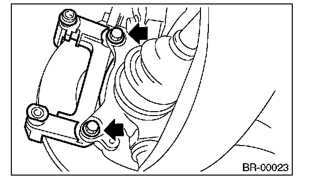 3) Remove the bolts which secure the caliper body.