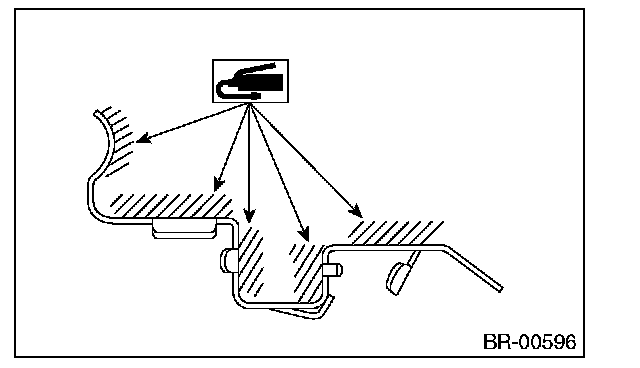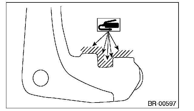 3) Apply a thin coat of Molykote M7439 (Part No. K0770YA000) or grease contained in the pad kit to the pad clip.
