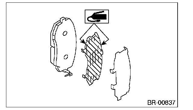 4) Apply a thin coat of Molykote AS880N (Part No. K0777YA010) or grease contained in the pad kit to both surfaces of the pad inner shim.