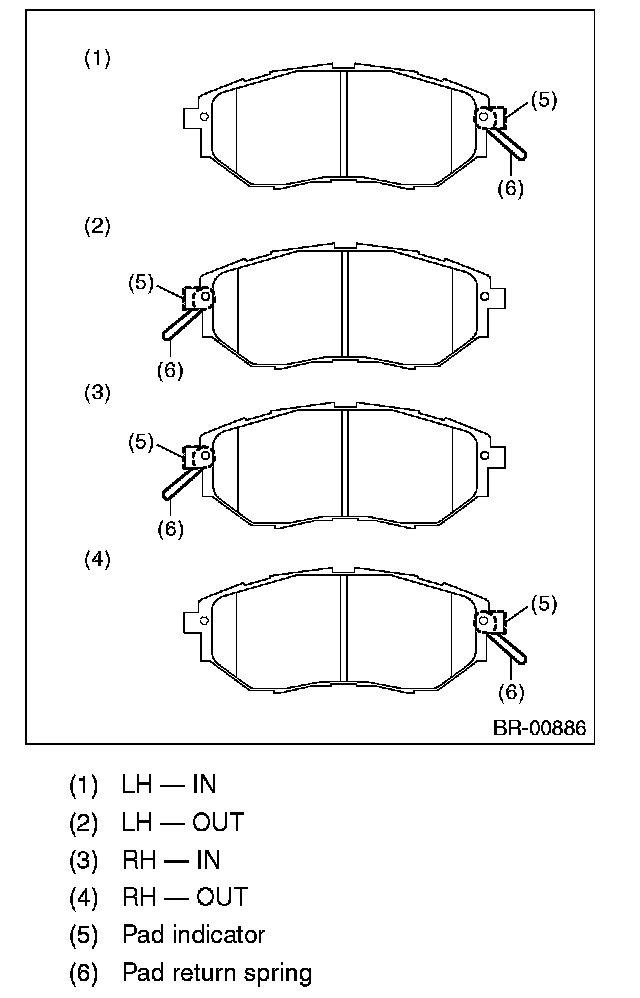 ^ If the pad return spring is deformed or damaged, replace the brake pad.