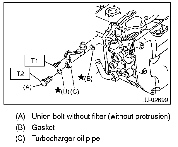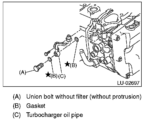 13) Install the turbocharger oil pipe.