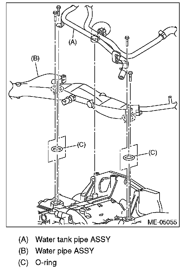 10) Install the blow-by pipe and water pipe assembly. (Oil pipe RH only)