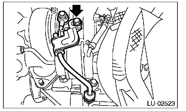 17) Tighten the bolts which hold the oil inlet pipe stay to the turbocharger.