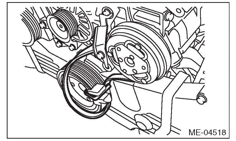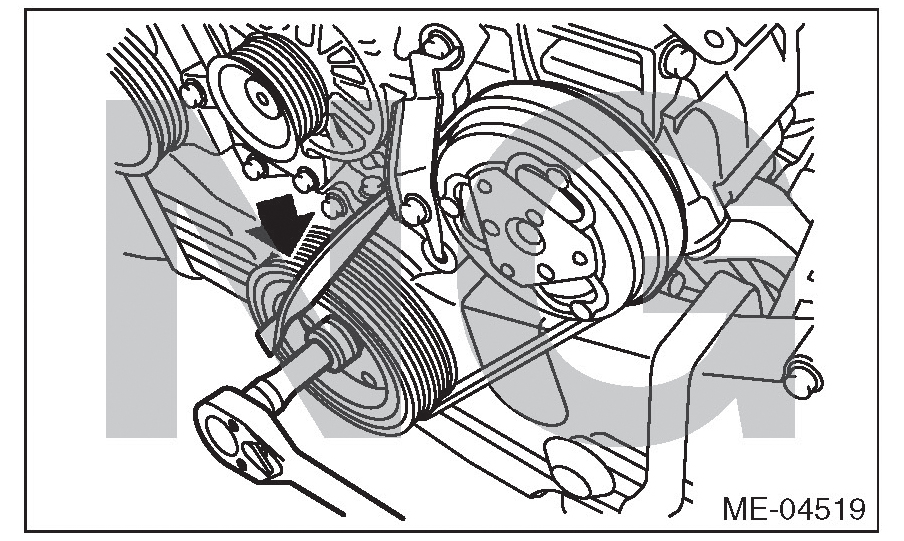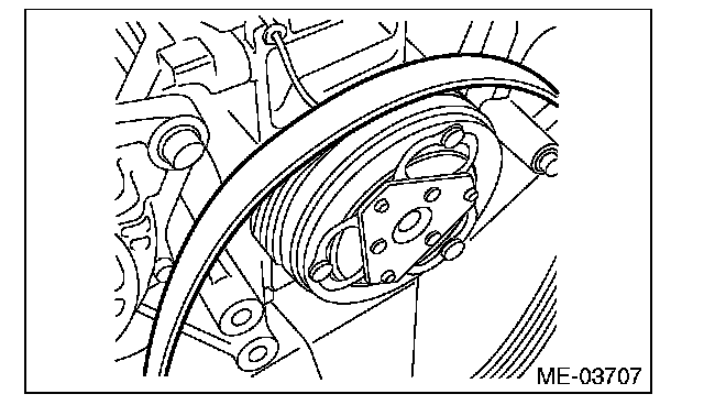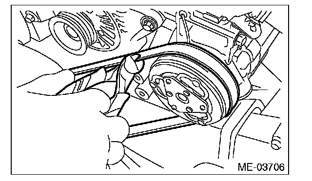 (2) The rib of the rear side belt is securely placed on the groove of the A/C compressor pulley.