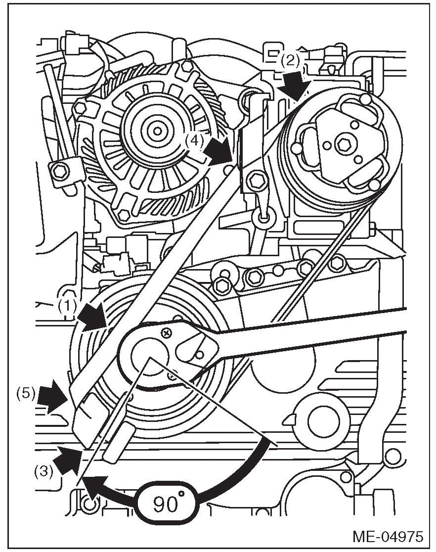 (1) The rib of the rear side belt is securely placed on the groove of the A/C compressor pulley.