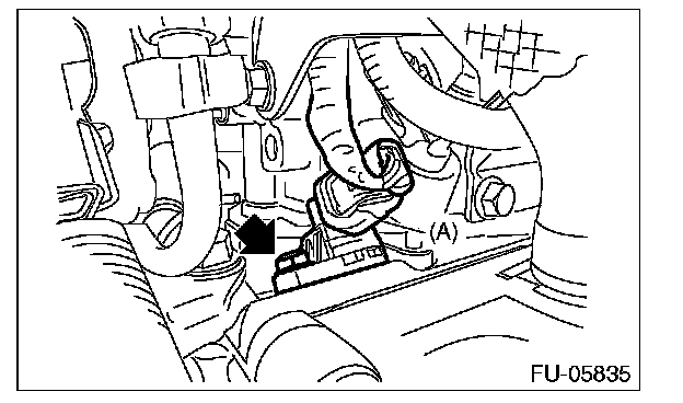 3. Disconnect the connector (A) from the camshaft position sensor RH, and remove the camshaft position sensor RH from the rear side of the cylinder head.