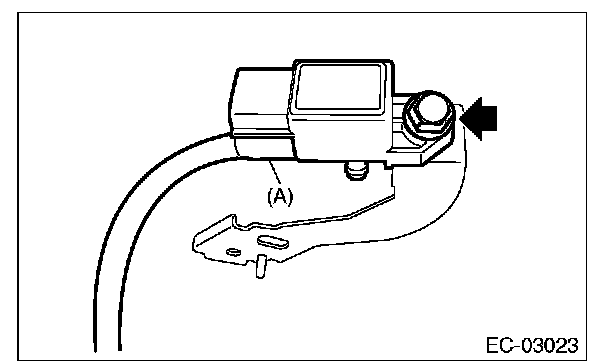 5. Remove the vacuum hose (A) from the fuel tank pressure sensor, and remove the fuel tank pressure sensor from the bracket.
