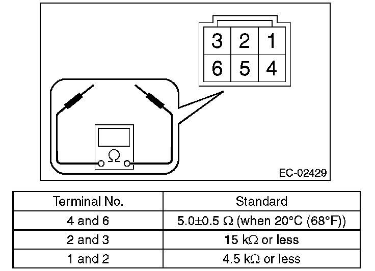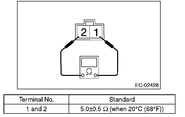 2. Check the resistance between the terminals of secondary air combination valve LH.