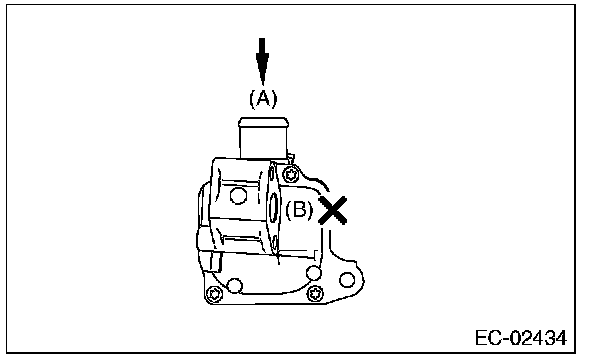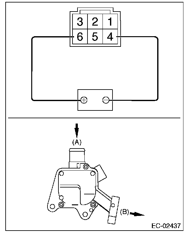 4. Connect the battery positive terminal to the terminal No. 6 and the battery negative terminal to the terminal No. 4. Check that air is discharged from (B), when supplying air to (A).