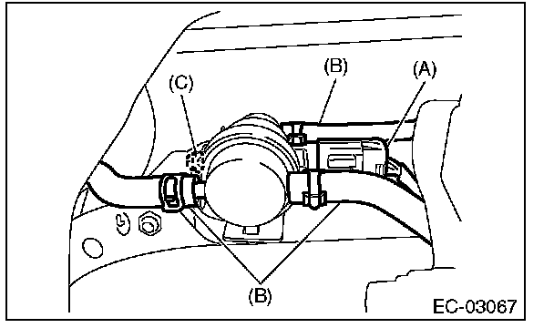 4. Remove the nut (C) securing the bracket to the fuel tank and remove the pressure control solenoid valve assembly.