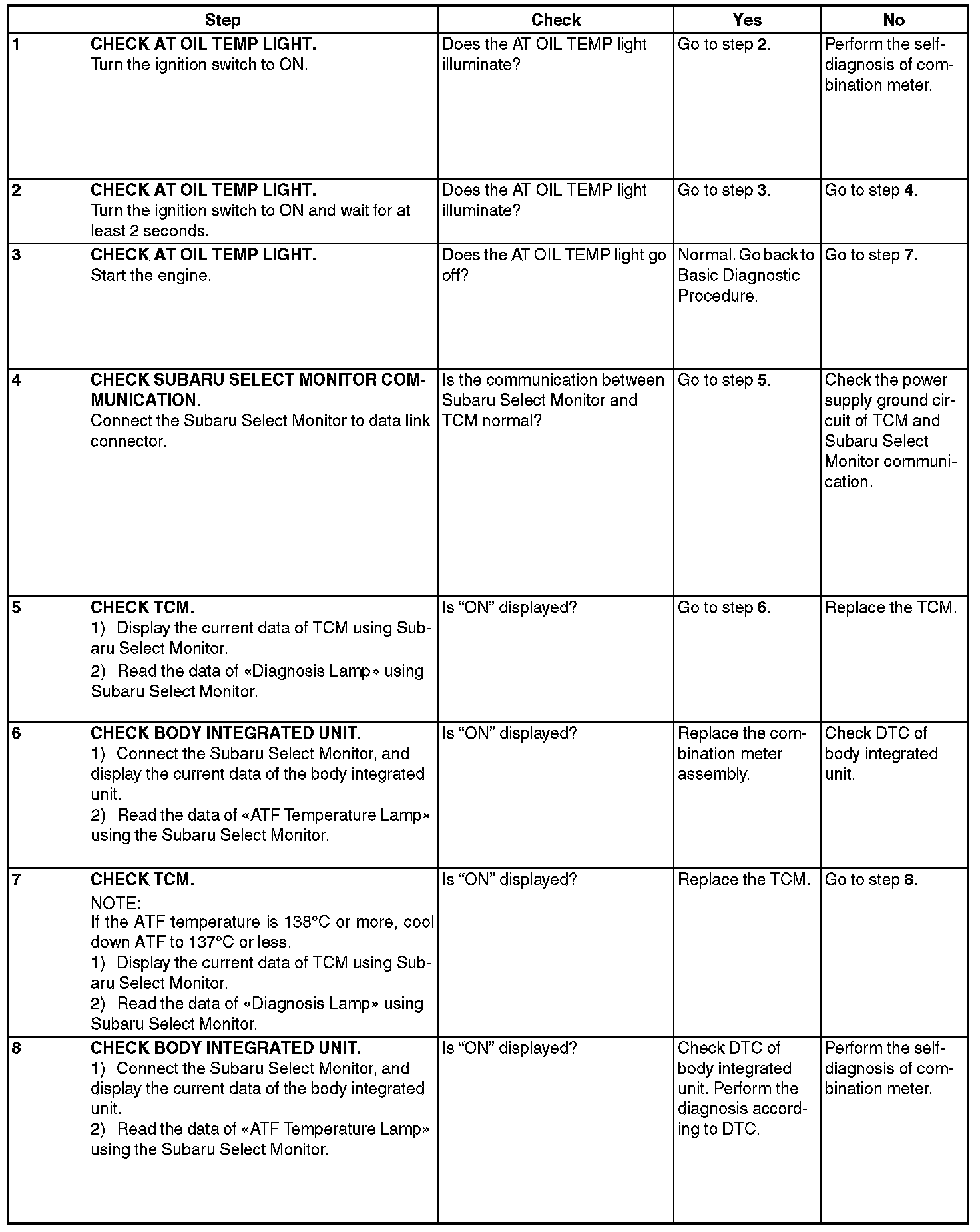 When the AT OIL TEMP light does not operate normally, check the AT OIL TEMP light circuit.