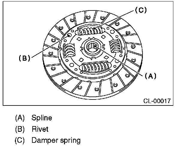 5) If there is spline wear, loose rivets, failed damper springs, etc., replace the clutch disc.