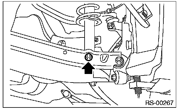 11) Remove the shock absorber lower bolt.