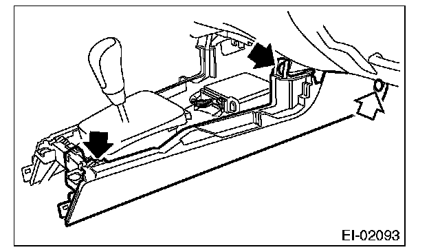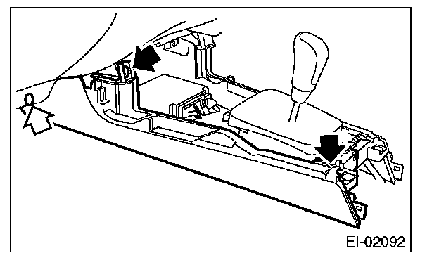 3. Detach the plastic hooks (A) and pull up on the console front panel.