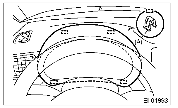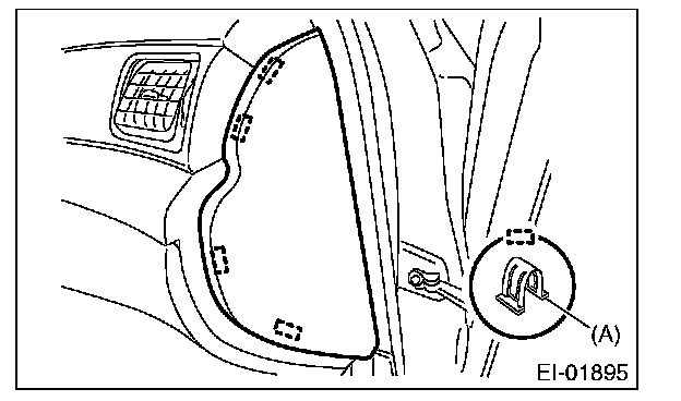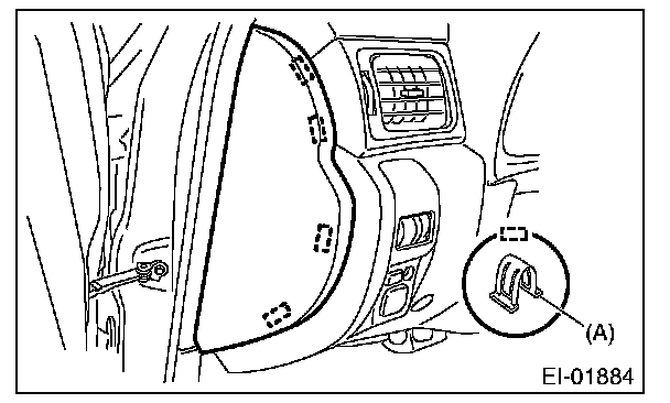 1. Detach the plastic hooks (A) and remove the instrument panel side cover LH.