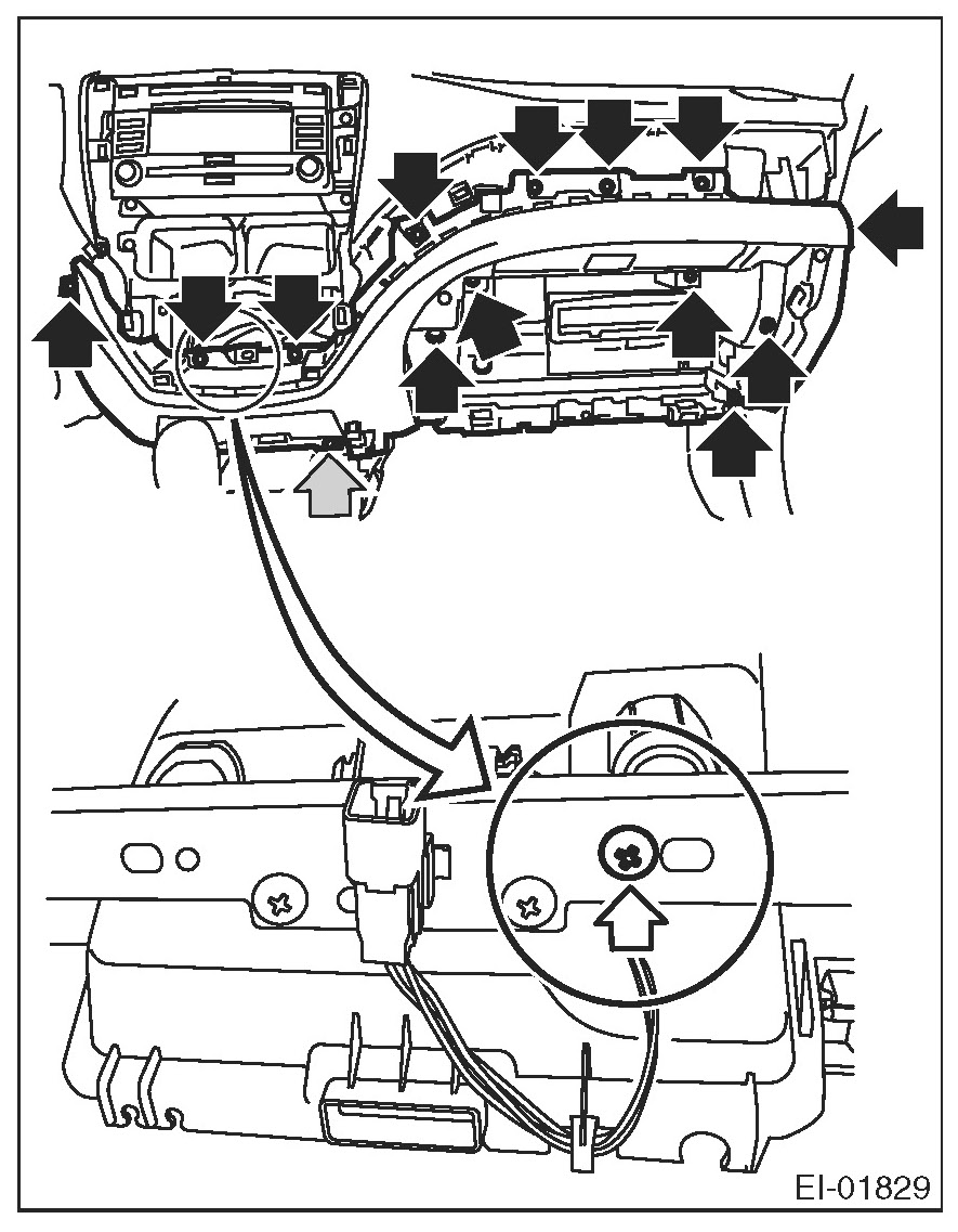 7. Remove the screws and nuts to remove the instrument panel lower.