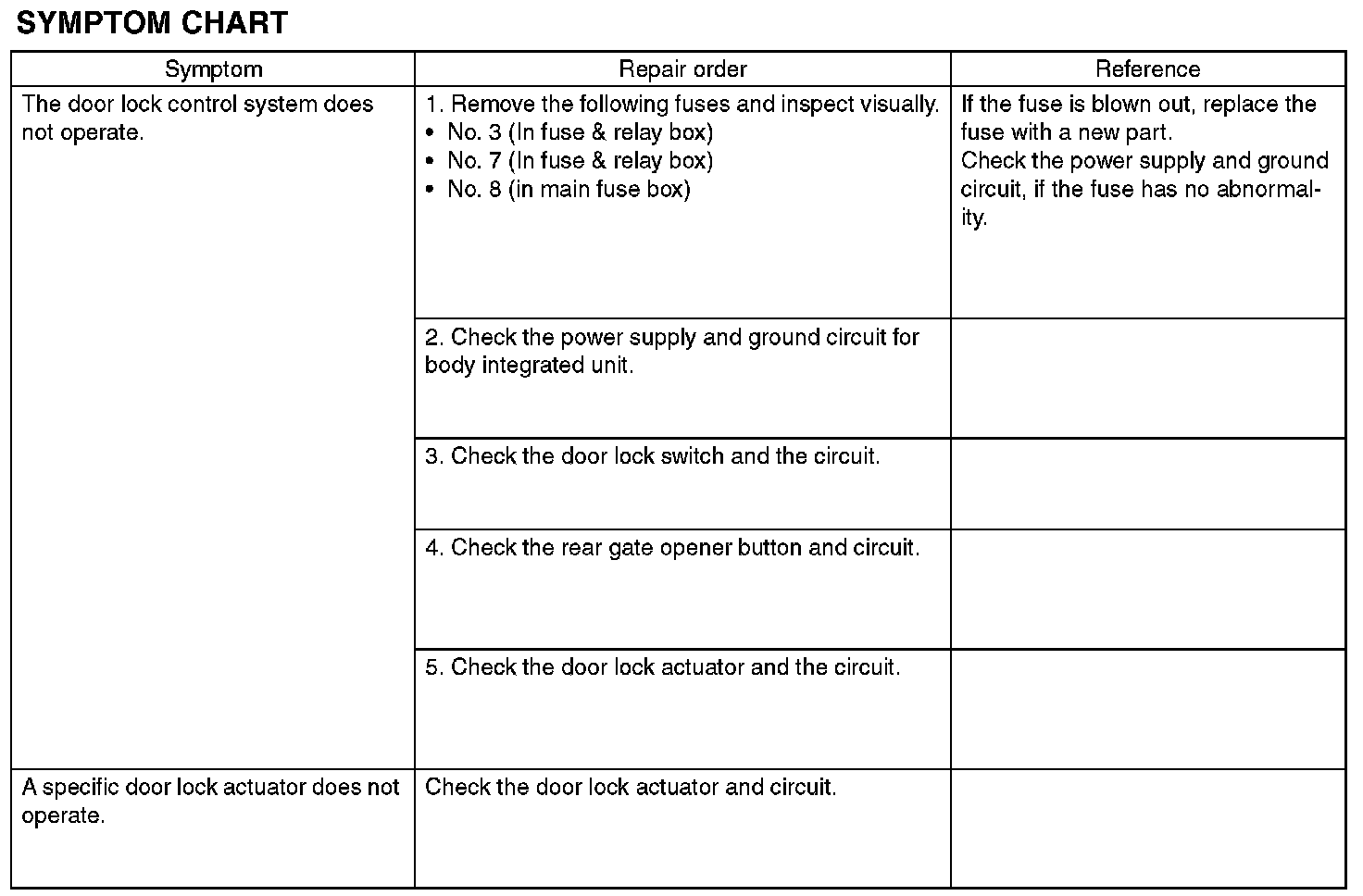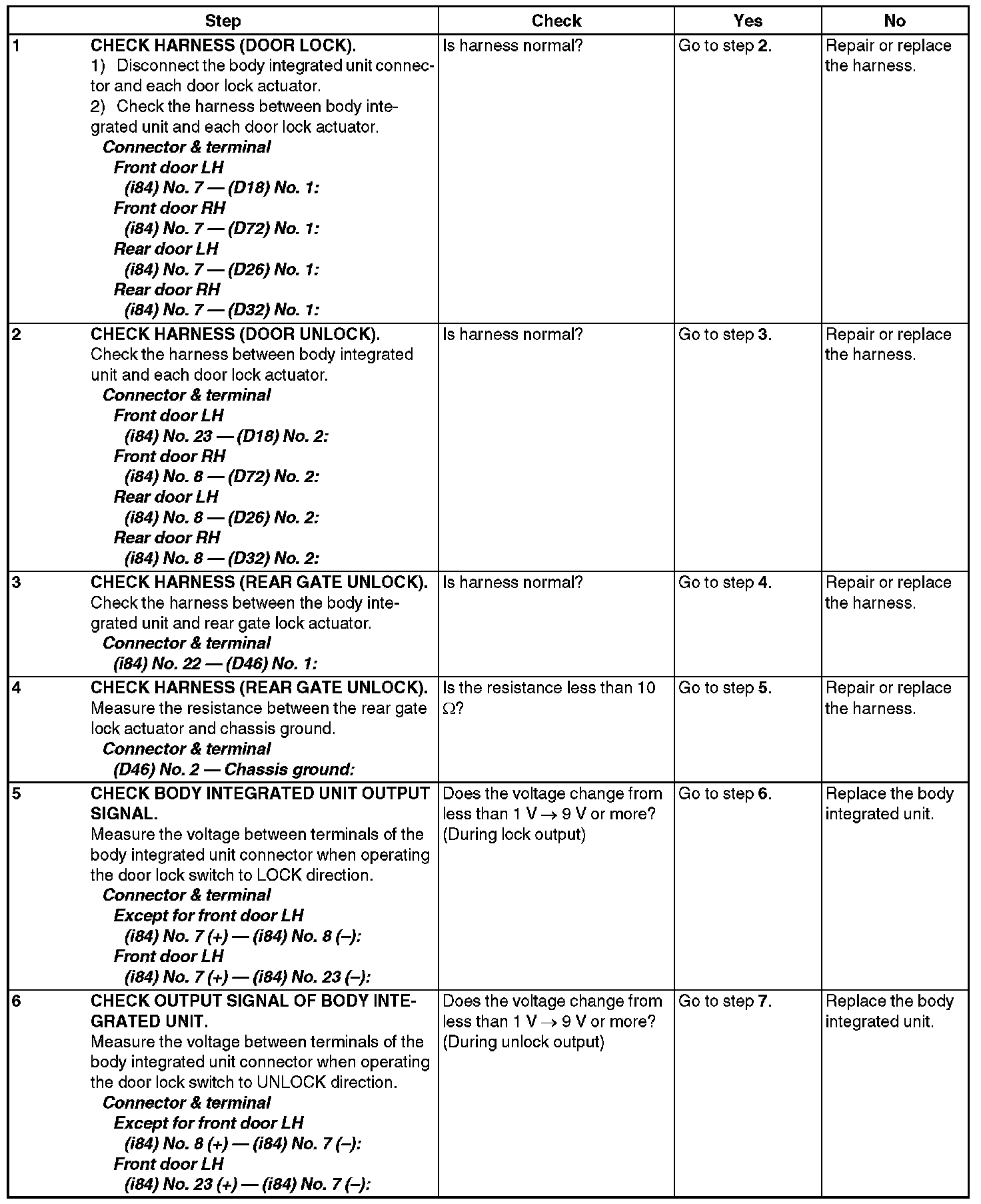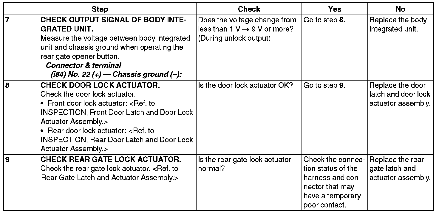 CHECK DOOR LOCK ACTUATOR & CIRCUIT
