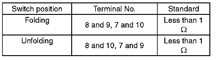3. Replace the remote control mirror switch if the inspection result is not within the standard value.