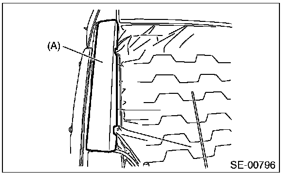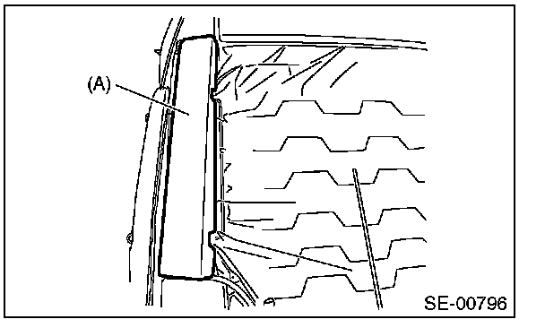 12. Remove the pad (A), and remove the mounting nut from the side airbag module.