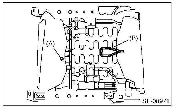 17. Remove the hooks (A), and then remove the seat cushion from seat cushion frame.