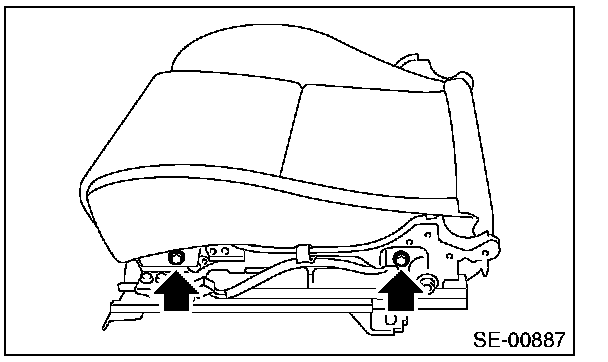 CAUTION: Before assembling, make sure how the harnesses of the side airbag and inner seat belt are routed in order to avoid misarranging. Assembling with harnesses improperly routed may cause the harness to get caught and short out.