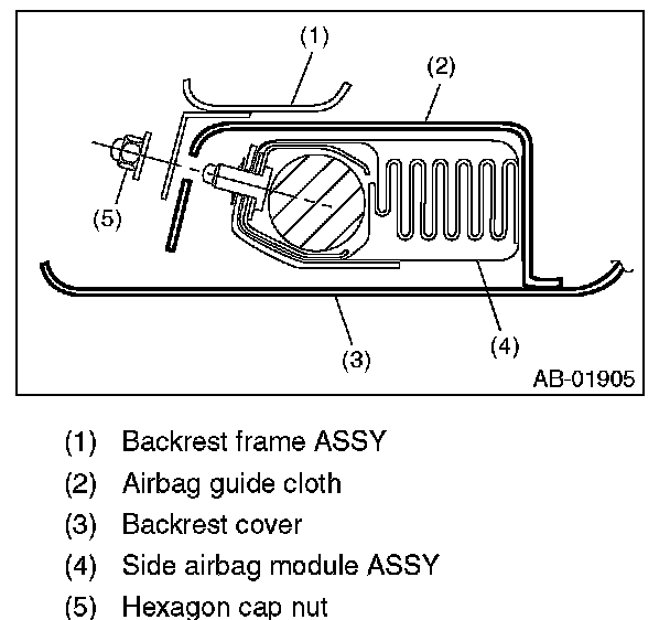 - When installing the side airbag module assembly, be sure to put the side airbag module between backrest cover and airbag guide cloth.