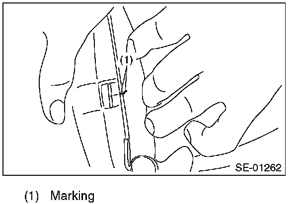 1. Adjust so that the left and right clearances between wire and seat pad become equal, and mark the seat pad.